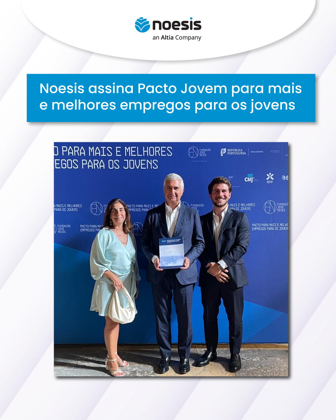 A Noesis esteve representada por Alexandre Rosa (CEO), e Teresa Lopes Gândara (Human Capital Senior Director). Contou ainda com Francisco Fonseca (Marketing Manager), que representou os jovens na Noesis, numa cerimónia realizada no Picadeiro Real, onde estiveram presentes o Presidente da República, Marcelo Rebelo de Sousa e algumas entidades, como o Conselho Nacional da Juventude (CNJ), o Instituto do Emprego e Formação Profissional (IEFP) e o Observatório do Emprego Jovem (OEJ).